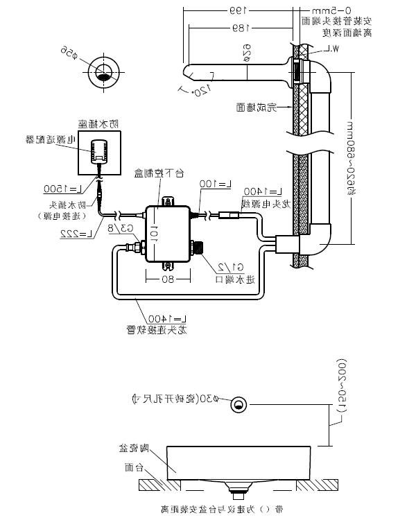 笼头层面(登台设定盒、手表进水橡胶软管、角阀、面盆溺水需另购)