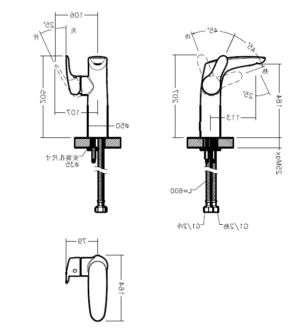 龙头主体,进水软管(角阀、面盆去水器需另购)