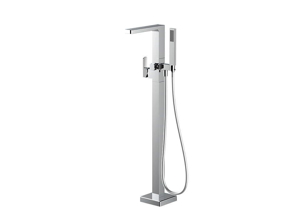 ● 时尚造型:方形落地式设计,精致简约 ● 优质黄铜:采用优质黄铜材质,防腐防锈性能强,坚固耐用 ● 强劲出水花洒:单功能铜材质一字型手持花洒,强劲花洒水, 感受SPA级的沐浴体验(配置PVC银泊管) ● 按键切换出水:两功能按压式自动切换阀,随心切换龙头/花洒出水。 启始龙头出水 - 按压切换为手持花洒出水 - 再提拉龙头出水, 关闭水源后切换阀自动复位至龙头位,人性化设计,更加符合用 户使用习惯 ● 优质镀层:优质表面处理工艺,符合盐雾实验24小时10级标准