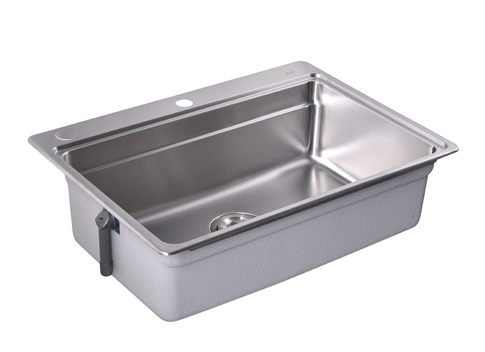 ●大单槽。与小滑盆KA1068-B1搭配成槽中槽,可实现单槽和双槽的灵活切换。 ●韩国浦项304不锈钢,0.8mm厚。 ●表面柔丝处理,细腻美观,耐刮耐磨,易清洁。 ●小R角盆体空间最大化 ●双层翻边,与台面贴合度好,不割手,承重力强,不渗水,不翘边 ●安全下水系统,安装简便,抗老化,耐热,快速排水不堵塞。 ●外壁均有防冷凝涂层,防止冷凝水损坏橱柜。底部配备橡胶消音垫,以降低洗涤蓄水时产生的噪音。