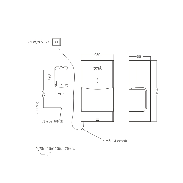 集成而成 直缝隙藏污纳垢 独特可视接水盘构思,恢复地表粗糙 45秒超时确保措施、串电确保措施、超量确保措施 滿意应急使用的过宽进风口,大量,迅速的干手
