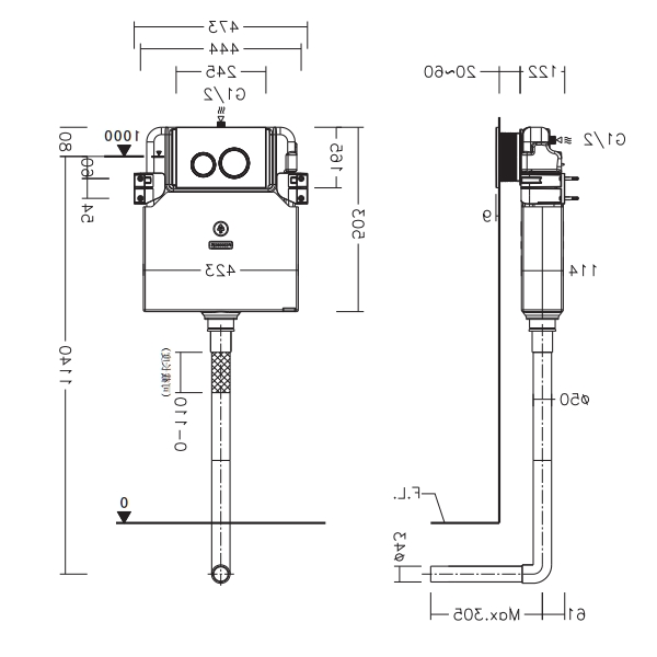 兼容蹲便器 清水箱整体化厚薄122mm 9mm超溥面版 中冷器外表由保丽龙快递包裹,控制墙外表温度低冷凝器 供排水管部位能选