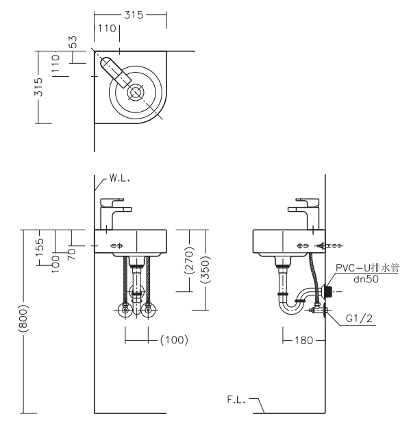 315x315x155mm