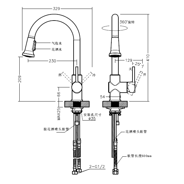 造型现代,抽拉式厨房龙头,可满足更广的清晰范围需求 气泡水、花洒水一键切换,适用于不同清晰场景 铸铜本体,陶瓷阀芯,经久耐用 镀洛外表面,耐蚀化