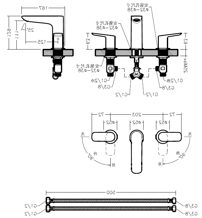 榜首本身 (渗水胶管, 角阀, 面盆去水器需另购)