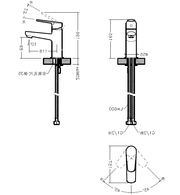 龙头主体,进水软管(角阀、面盆去水器需另购)