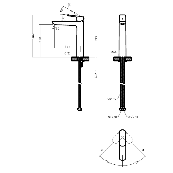 龙头主体,进水软管(角阀、面盆去水器需另购)