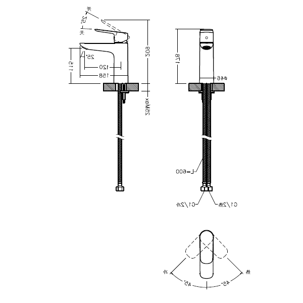 龙头主体,进水软管(角阀、面盆去水器需另购)