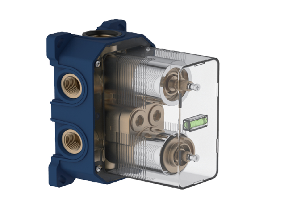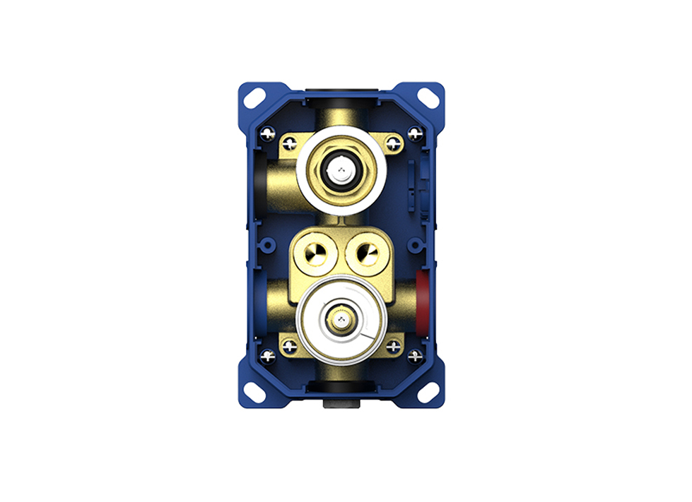 ●优质黄铜:阀体采用优质铜材质,确保用水安全健康 ●恒温阀芯:选用Vernet恒温阀芯,38℃恒定温暖,告别冷热不定 ●顶洒出水水路朝上;手持花洒水路朝右侧或下方,用户可选择 ●辨识考量:阀体冷水端配蓝色橡胶圈,热水端配红色橡胶圈,顶洒和手持花洒出水端配黑色橡胶圈,不同颜色提供辨识度,方便安装,避免误操作引起其他不必要的麻烦。盒子上盖带水平仪,安装时可快速调整阀体于合适的位置,避免安装后歪斜等与墙面不平行状况 ●ABS盒子:阀体外盒采用ABS材质,紧固耐用,方便拆装;带NBR墙垫,方便暗装阀体拆装维护,保护阀体 ●二路出水:二路出水设计,手持花洒有2条水路可选择