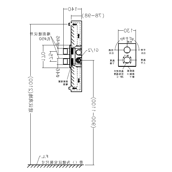 ●恒温锁温键:调温把手锁温按键设计,恒温锁定38℃,让您用水温暖又舒适面板恒温标识,方便操作