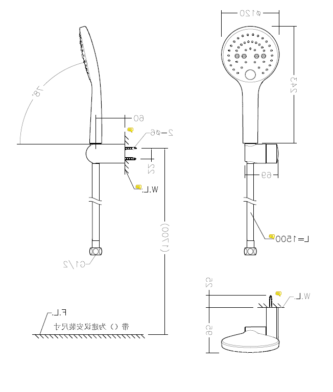手持花洒、墙座、PVC花洒软管