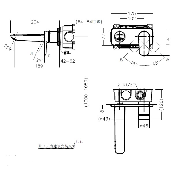 LF36306L-P1CP洗面盆用嵌壁挂式开关按钮手组