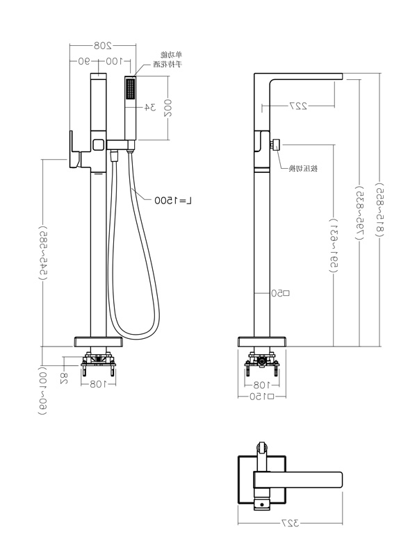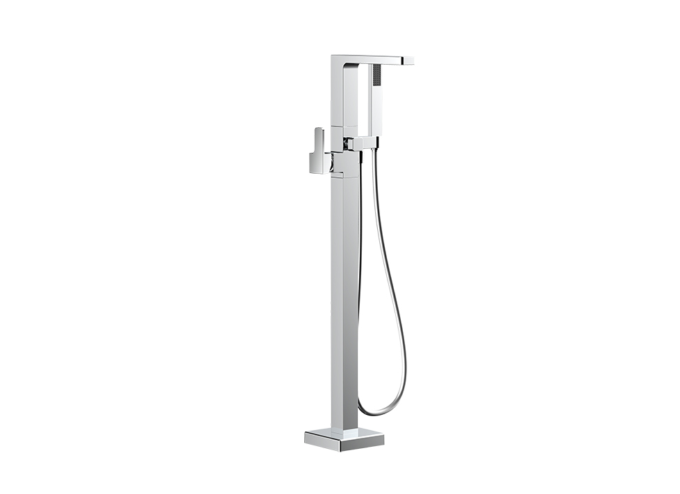 ● 时尚造型:方形落地式设计,精致简约 ● 优质黄铜:采用优质黄铜材质,防腐防锈性能强,坚固耐用 ● 强劲出水花洒:单功能铜材质一字型手持花洒,强劲花洒水, 感受SPA级的沐浴体验(配置PVC银泊管) ● 按键切换出水:两功能按压式自动切换阀,随心切换龙头/花洒出水。 启始龙头出水 - 按压切换为手持花洒出水 - 再提拉龙头出水, 关闭水源后切换阀自动复位至龙头位,人性化设计,更加符合用 户使用习惯 ● 优质镀层:优质表面处理工艺,符合盐雾实验24小时10级标准
